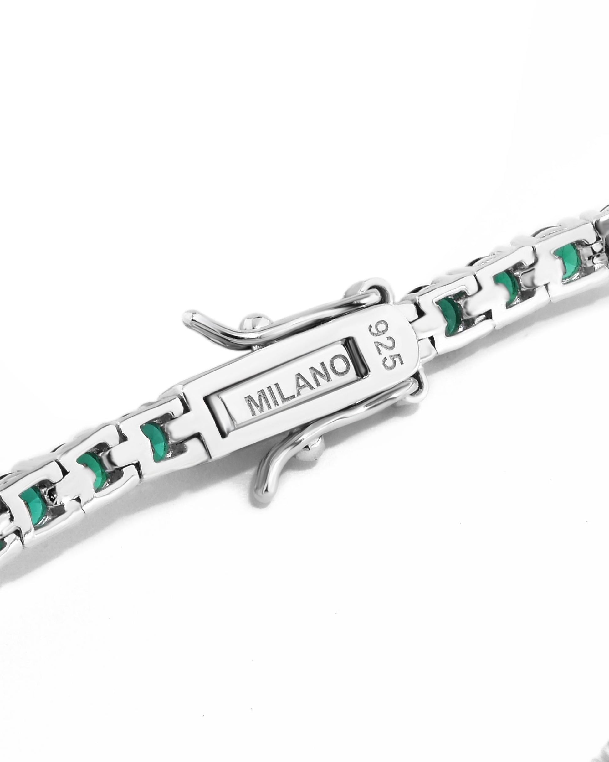 The Smeralda Riviera is a classic Riviera-style bracelet crafted in 925 Sterling Silver with an 18k White Gold finish, providing refined shine and an immaculate platinum-like appearance. Its continuous design features high-cut emerald-green zirconia stones that reflect light intensely, evoking the beauty of Italy’s lush landscapes. With precise stone setting and an articulated structure, the piece offers comfort, elegance, and versatility, transitioning effortlessly from day to night. A timeless jewel that adds color with sophistication and radiates charm in every detail. Comes with a lifetime warranty.